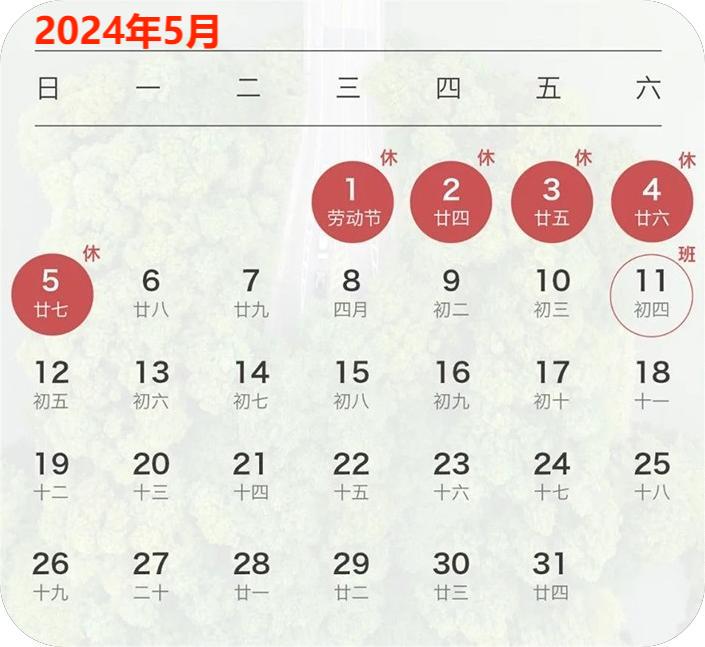 根據《國務院辦公廳關于2024年部分節假日安排的通知》并結合我司實際業務需求,2024年勞動節放假安排如下: